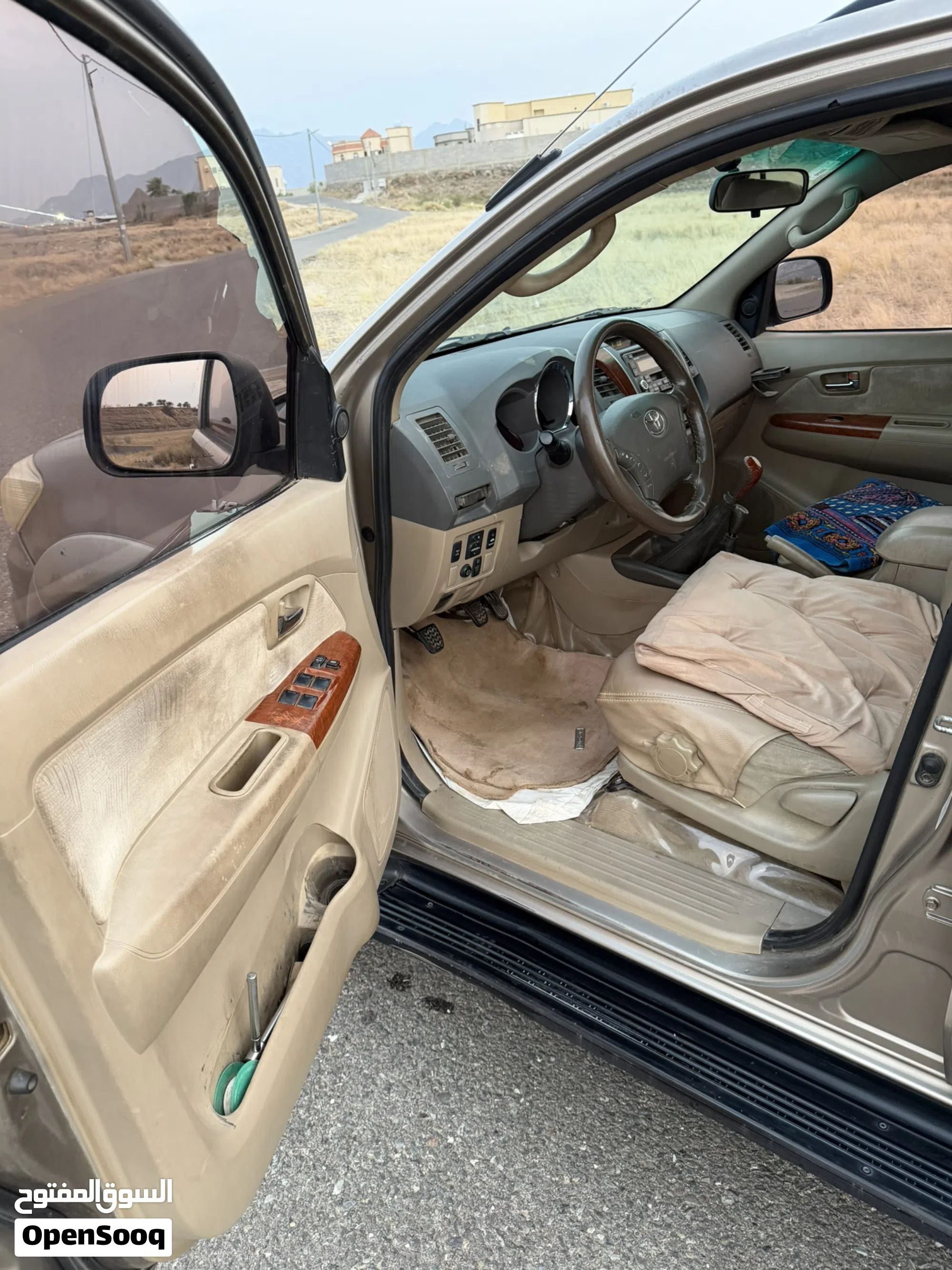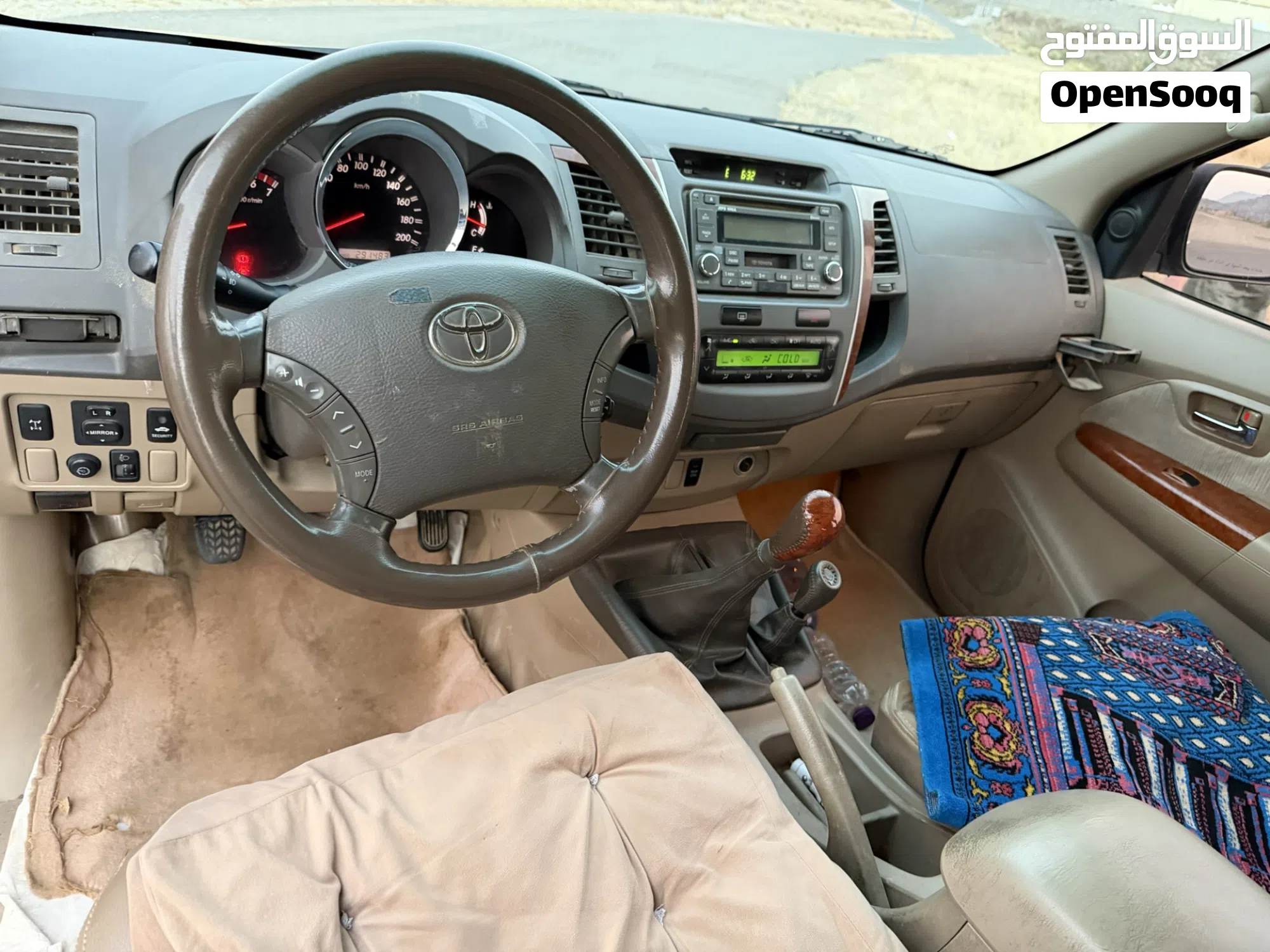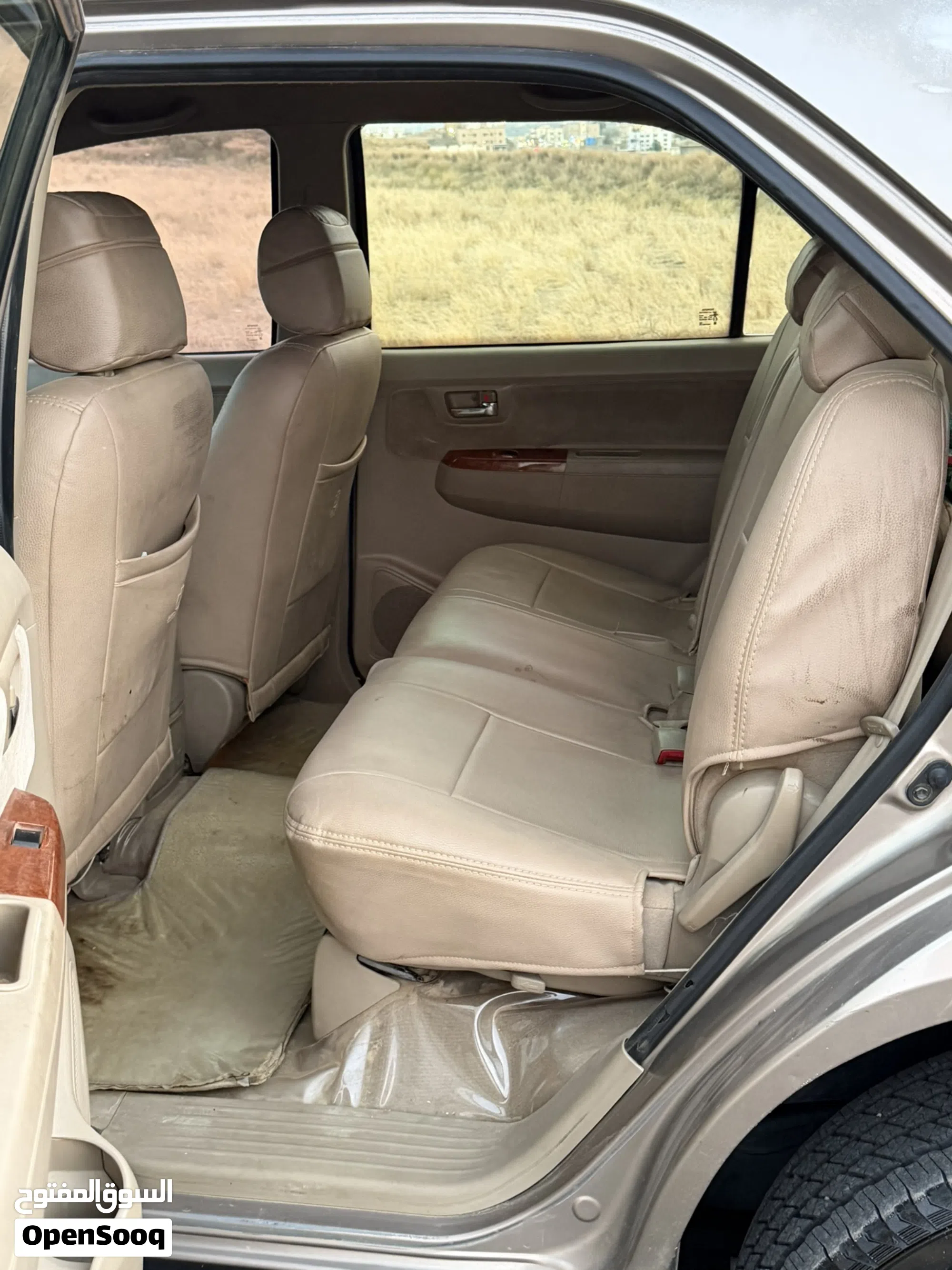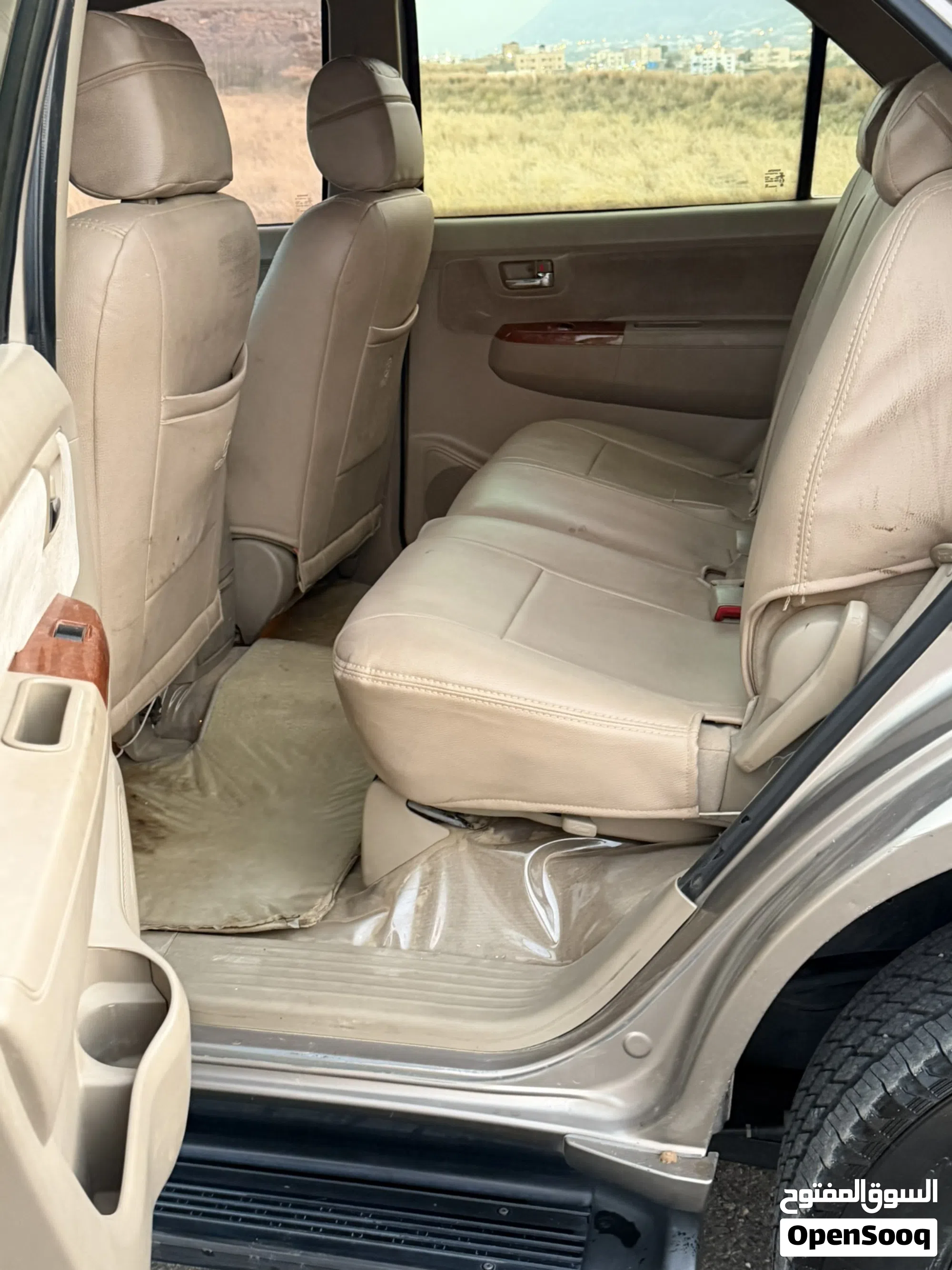 تويوتا فورتشنر SR5 موديل 2011 بحالة مستعملة ومواصفات خليجية، قطعت مسافة 292000 كم. تعمل بمحرك بنزين 6 سلندر سعة بين 4000 و5000 سي سي مع ناقل حركة يدوي ونظام دفع دبل. السيارة تتسع لـ 7 ركاب وتأتي بحالة جيدة مع دهان أصلي ووجود عيوب بسيطة في البودي، وتم تعديل دقة خفيفة. السيارة مجهزة بمكيف أمامي وخلفي مركزي مع تحكم، إضافة إلى دفلوك ومثبت سرعة وتحكم دركسون. جميع الأجزاء تعمل بشكل جيد والسيارة جاهزة للاستخدام اليومي.