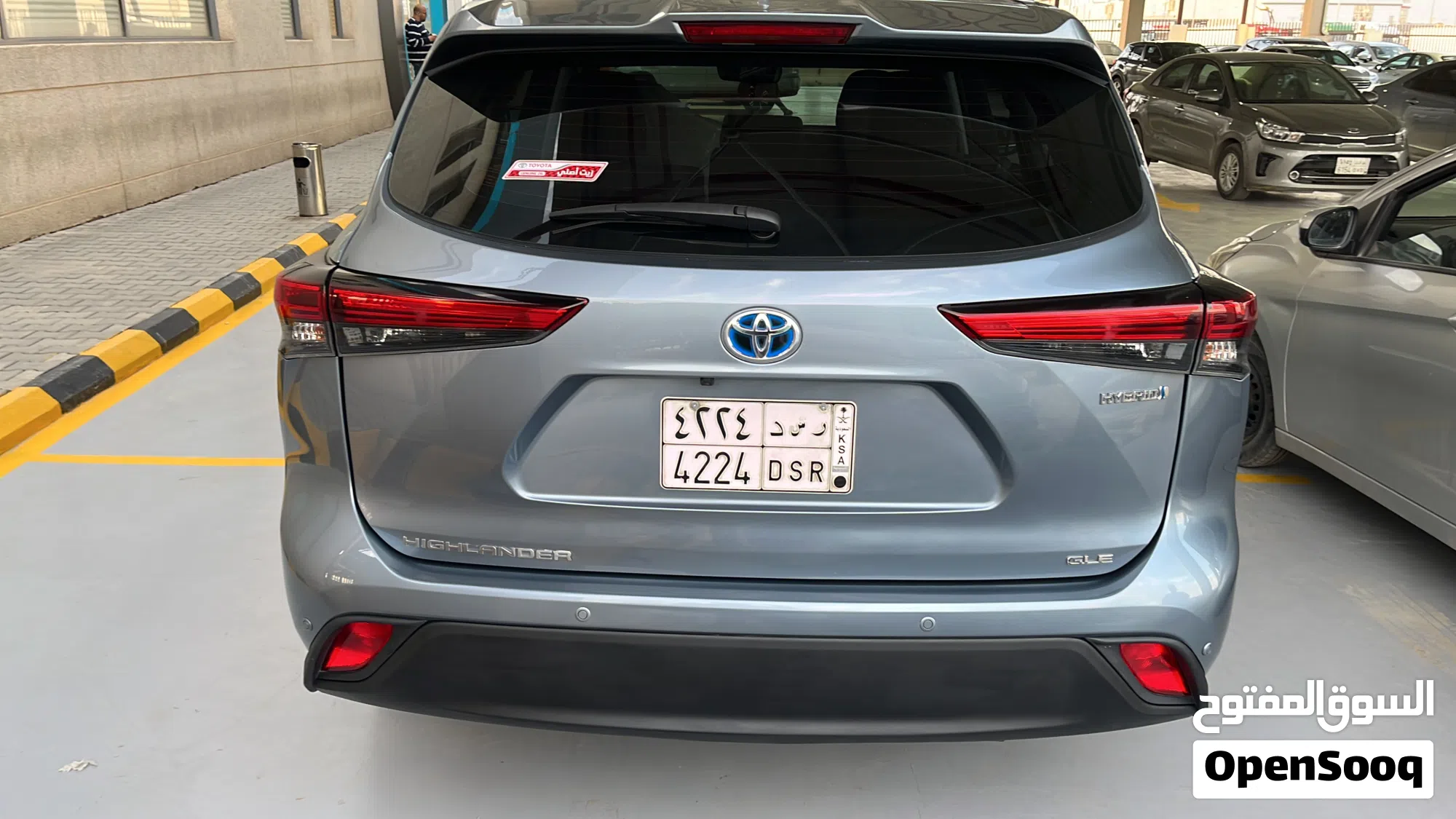 تويوتا هايلاندر فئة GLE موديل 2023 بحالة مستخدمة استخدام شخصي، السيارة هايبرد بعداد 58000 كم مع ناقل حركة أوتوماتيك وتأتي بمواصفات أمريكية. السيارة مالك أول وما زالت تحت الضمان، وجميع الصيانات الدورية تمت في الوكالة. مزودة بعدد من التجهيزات مثل شاشة لمس مع نظام ملاحة، بلوتوث، كاميرا خلفية، مثبت سرعة، تنبيه الاصطدام الأمامي وتنبيه مغادرة المسار، بالإضافة إلى حساسات خلفية وحساس ضغط الإطارات. تأتي أيضاً بفتحة سقف، جنوط، مصابيح LED، مرايا كهربائية ودخول بدون مفتاح مع مقاعد كهربائية ومكيف وزجاج كهربائي. تم تغيير الصدام الأمامي والخلفي مع وجود حكّة في الرفرف الأيمن والشنطة وتمت معالجتها في الوكالة.