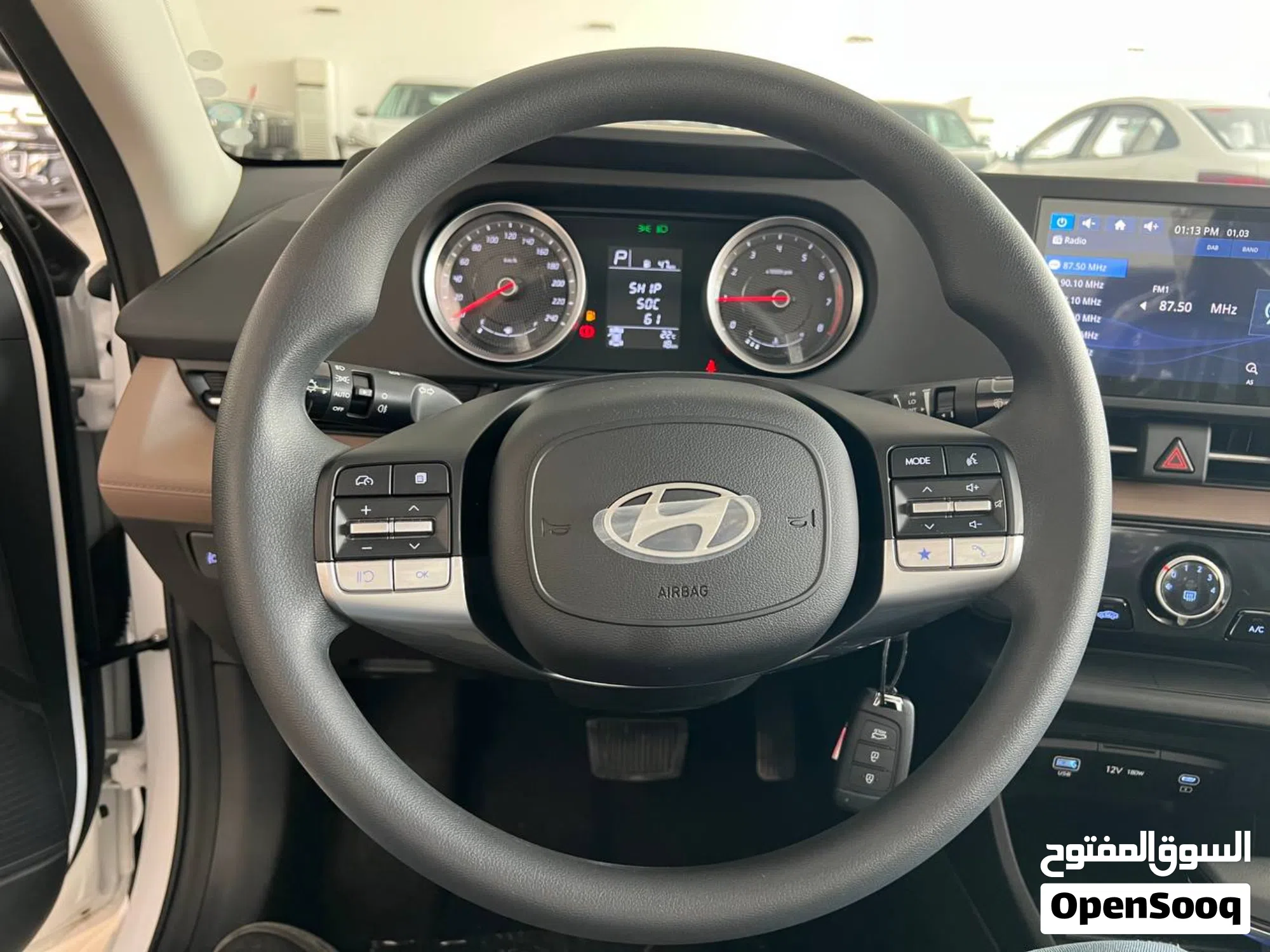 هيونداي اكسنت فئة Standard موديل 2026 جديدة بحالة ممتازة وعداد 1 كم فقط. السيارة مزودة بمحرك 1500 سي سي 4 سلندر بنزين مع ناقل حركة CVT ونظام دفع أمامي. تتميز بجنوط 15 إنش، إشارات بالمرايا، كشاف ضباب خلفي، وحساسات خلفية. كما تحتوي على شاشة معلومات تدعم أبل كار بلاي، كاميرا خلفية، تحكم بالمقود، مثبت سرعة، بلوتوث، ومكيف يدوي مع فتحات تكييف خلفية. تشمل أنظمة الأمان فرامل ABS، نظام الثبات الإلكتروني، حساس ضغط الإطارات ووسائد هوائية. السيارة غير مرخصة وغير مؤمنة وغير مجمركة، ومتوفرة بعروض لمدة 3 أيام فقط.