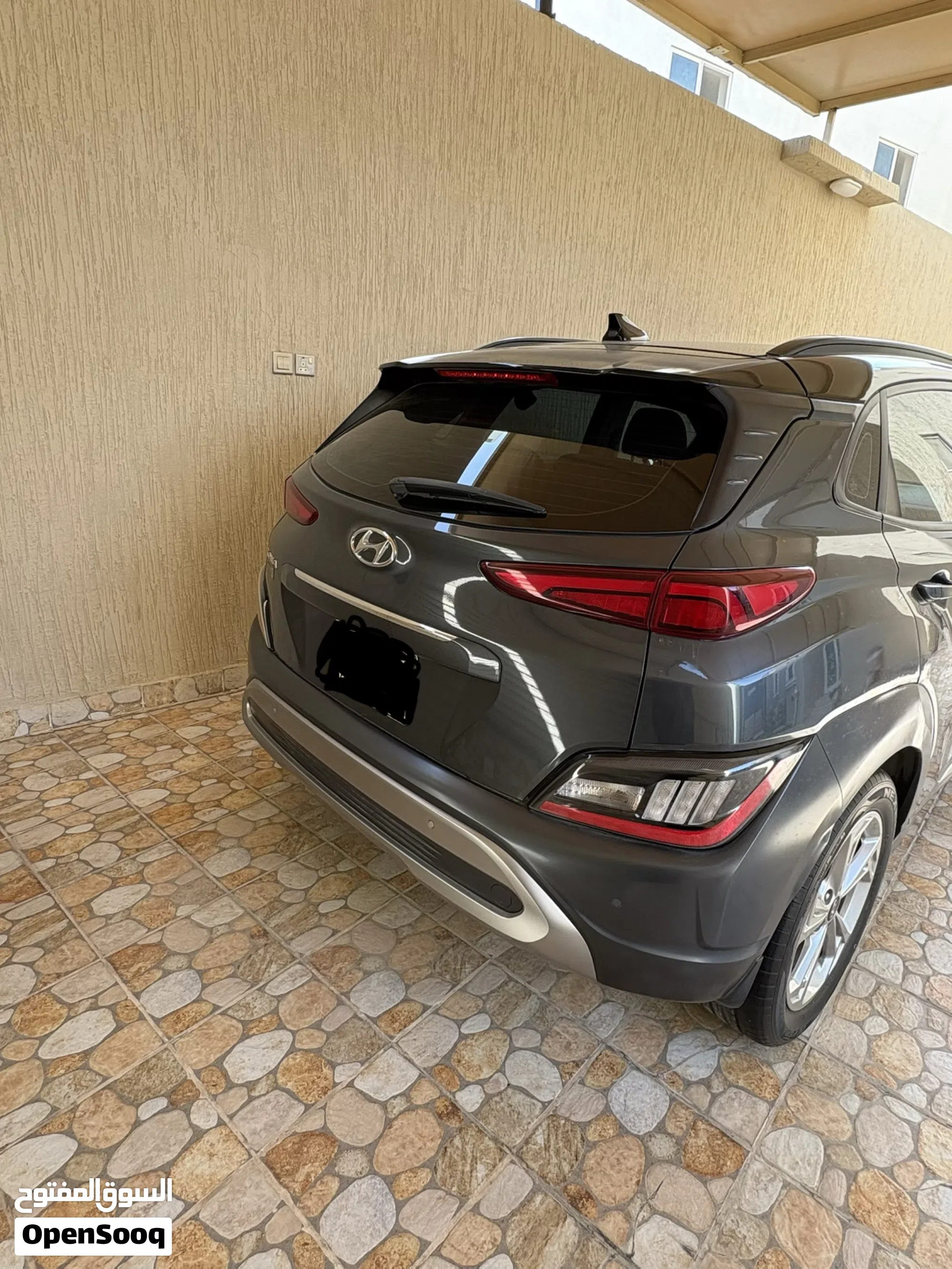 For sale in Al-Ahsa, this 2021 Hyundai Kona Premium is in excellent condition with only 14,000 km on the odometer, making it nearly new. It features a gasoline engine paired with an automatic transmission. The body is in pristine condition, accident-free, with original paint and all parts agency imported. There is a minor scratch on the rear door that has been professionally repaired and is not noticeable. This vehicle is equipped with advanced features including keyless entry, a fingerprint start, a touchscreen display compatible with Apple CarPlay and Bluetooth, a navigation system, a rear camera with sensors, and safety systems such as radar, forward collision warning, blind spot monitoring, lane keeping assist, and automatic braking. It is fuel-efficient and ideal for daily use. The car is very clean and available for cash sale.