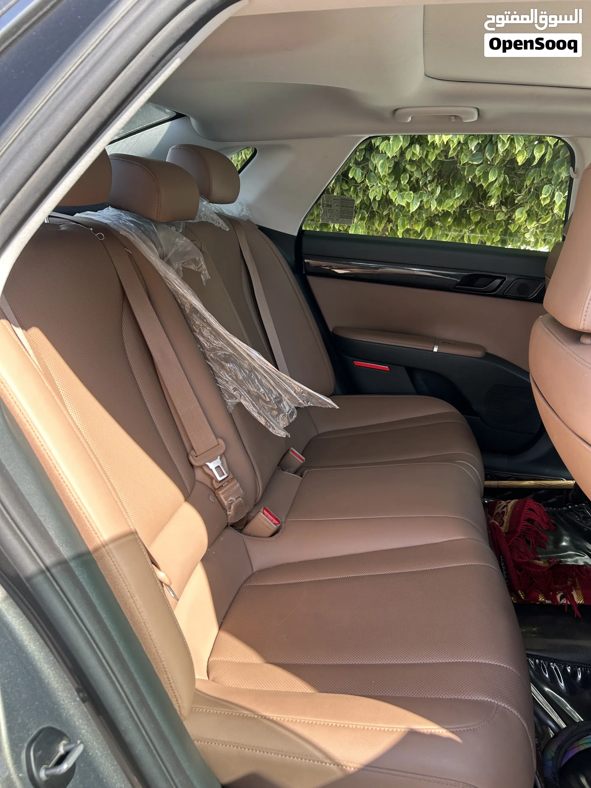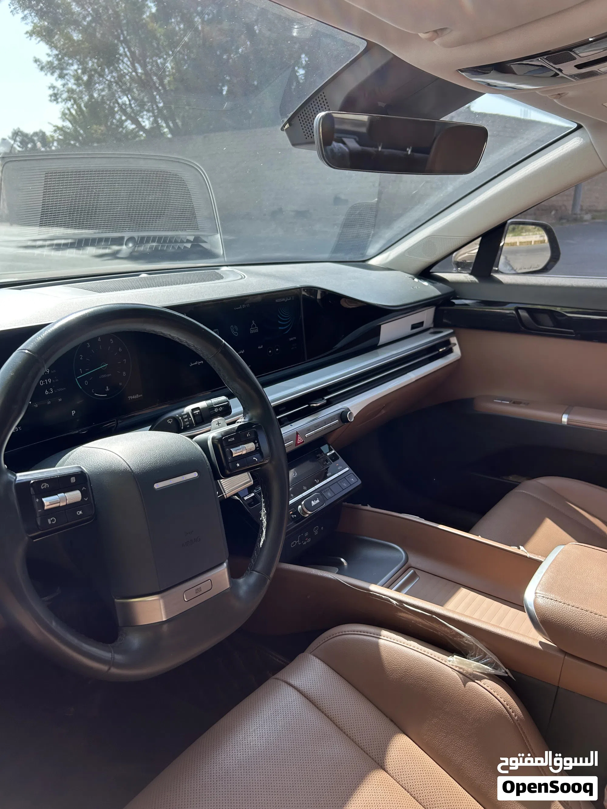 The 2024 Hyundai Azera Standard is now available for sale in excellent used condition. With a mileage of 97,000 km, this sedan is powered by a robust 3.5L V6 engine paired with an automatic transmission and front-wheel drive. The exterior is finished in a stunning gold color, complemented by a beige interior featuring leather seats that comfortably accommodate up to five passengers. This Azera comes equipped with a plethora of features designed for comfort and convenience, including a panoramic sunroof, a 12.3-inch navigation screen, a 12.3-inch digital instrument cluster, a rear camera, and a 360-degree camera. Additional features include front and rear parking sensors, Bluetooth connectivity, Apple CarPlay, remote start, keyless entry, cruise control, a wireless charger, and an electronically controlled air conditioning system. Moreover, the vehicle is fitted with 18-inch alloy wheels and LED headlights, ensuring both style and safety. It is still under warranty until it reaches 100,000 km or 5 years, with regular maintenance conducted every six months, providing peace of mind for its next owner.